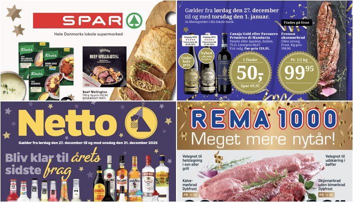 Spar tilbyder Beef Wellington til en pris på 99 kr. pr. stk. med en vægt på 750 g. Dette tilbud gælder fra lørdag den 27. december til onsdag den 31. december.