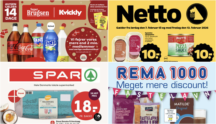 SuperBrugsen tilbyder Coca-Cola, Fanta eller Schweppes i flere varianter til kun 11 kr. pr. flaske. Literprisen er maks. 8,80 kr. + pant. Tilbuddet gælder fra fredag den 6. februar til torsdag den 19. februar.